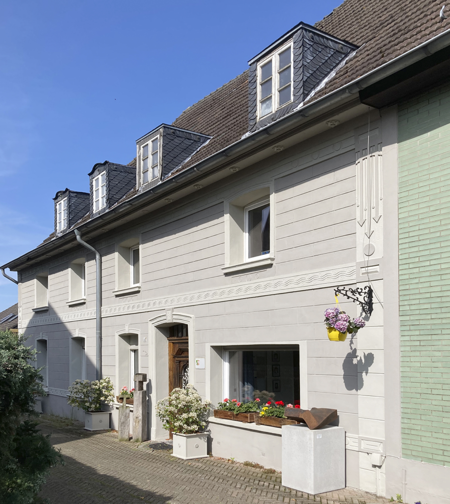 Haus 22 weist die Jahreszahl 1812 auf. Hier wird der Raum für Wohnen und zeitgenössische Kunst auf 140 Quadratmetern über 2 Etagen und in einem großzügigen Dachstudio mit historischem Dachgebälk bis in die hohe Firste kombiniert. Fernblick nach Osten (bis zur Duisburger Industriekulisse) bei klarer Sicht inclusive. Kunsthaus Bassier als `Arbeitstitel` des Privatsammlers Reinhard Bassier aus Rheinberg-Orsoy.