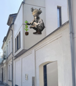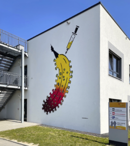 Thomas Baumgärtel hat im Frühjahr 2021 die Fassade des städtischen Altersheims Hardterbroich in Mönchengladbach mit einer „Impfbanane“ besprüht, um Gesundheitseinrichtungen zu würdigen, die während der Corona-Pandemie besondere Leistungen erbracht haben. Die Aktion soll als symbolische Auszeichnung und Dank für Pflegekräfte, Bewohner und freiwillige Helfer verstanden werden.