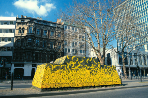 1986 erste Markierung eines Kunstortes mit der Spraybanane