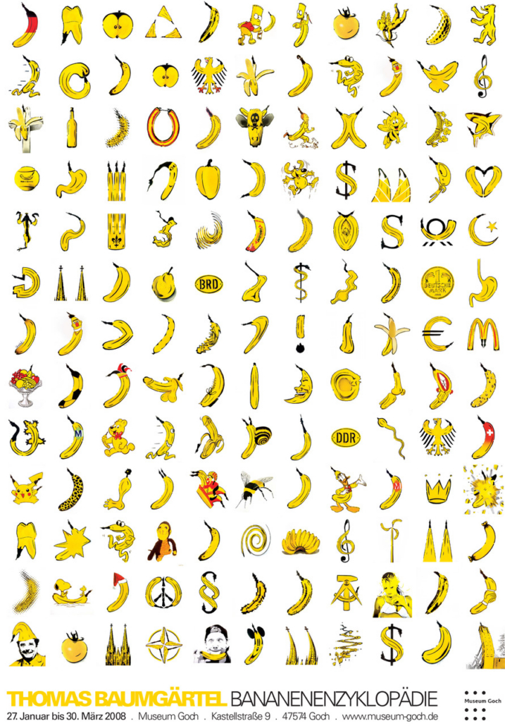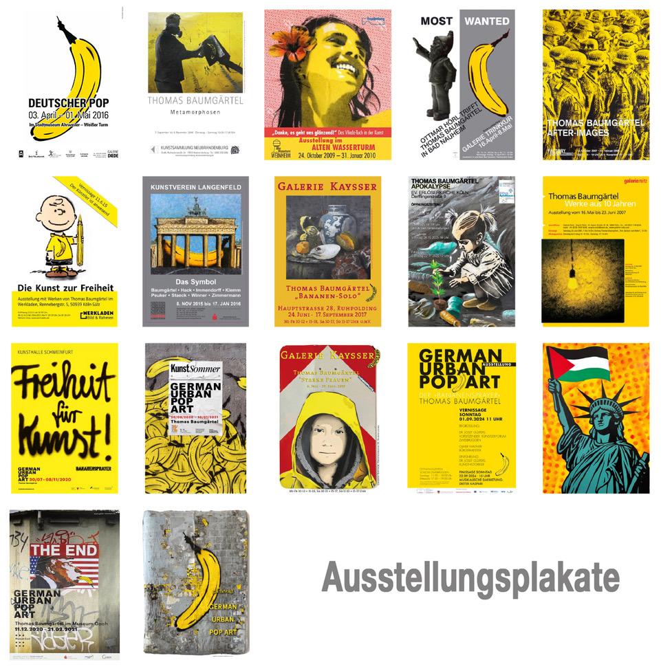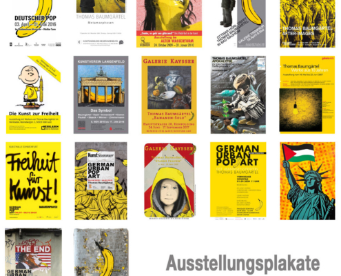 Die Ausstellungsplakate von Thomas Baumgärtel dokumentieren nicht nur seine etwa 700 Ausstellungen über 40 Jahre, sondern reflektiert zugleich die stilistische, inhaltliche und mediale Entwicklung seines Gesamtwerks. Als visuelle Zeitzeugnisse machen sie den Wandel seines Umgangs mit der Banane als Symbol ebenso sichtbar wie seine Positionierungen in gesellschafts- und kulturpolitischen Diskursen.