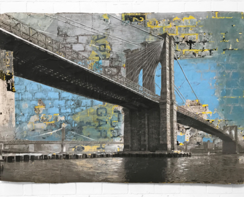 In den „Brückenbildern“ erhebt Thomas Baumgärtel die Brücke zum zentralen Bildträger einer klaren gesellschaftlichen Haltung. Die Brücke steht bei ihm für Verbindung, Austausch und Verständigung – als bewusster Gegenentwurf zu Abschottung, Ausgrenzung und nationalen wie mentalen Mauern. In einer Zeit, in der politische Rhetorik wieder von Grenzen, Protektionismus und Abgrenzung geprägt ist, setzt Baumgärtel das Bild der Brücke als Zeichen des Aufeinander-Zugehens, der Offenheit und des Dialogs.