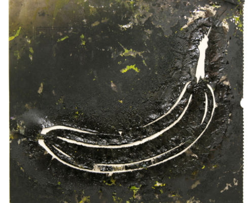 Nur selten gibt er Schablonen ab – meist erst dann, wenn sie technisch verschlissen oder nicht mehr einsetzbar sind. In diesen Fällen werden sie selbst zu autonomen Kunstobjekten, die den Entstehungsprozess, Gebrauchsspuren und die Geschichte ihres Einsatzes sichtbar tragen.