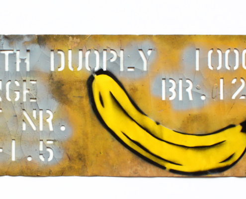 Mitte der 1980er Jahre entwickelte sich Köln zur führenden Kunstmetropole Deutschlands. Galerien entstanden in großer Zahl, die Szene war dynamisch, international vernetzt und stark von institutionellen Mechanismen geprägt. Baumgärtels Banane fungierte in diesem Umfeld als subversives Qualitätssiegel – ironisch, kritisch und zugleich affirmativ. Die Schablone wurde damit zum Instrument der künstlerischen Kommentierung des Kunstbetriebs.