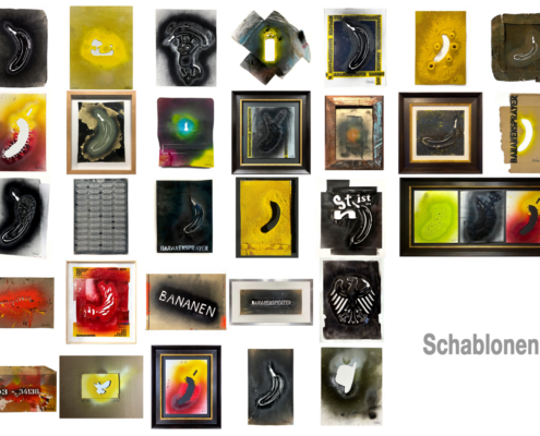 Die Werkgruppe „Schablonen“ dokumentiert damit nicht nur eine Technik, sondern eine kontinuierliche künstlerische Haltung seit 1986: zwischen Street Art und Institution, zwischen Intervention und Archiv, zwischen flüchtigem Sprayakt und dauerhaftem kunsthistorischem Zeichen.